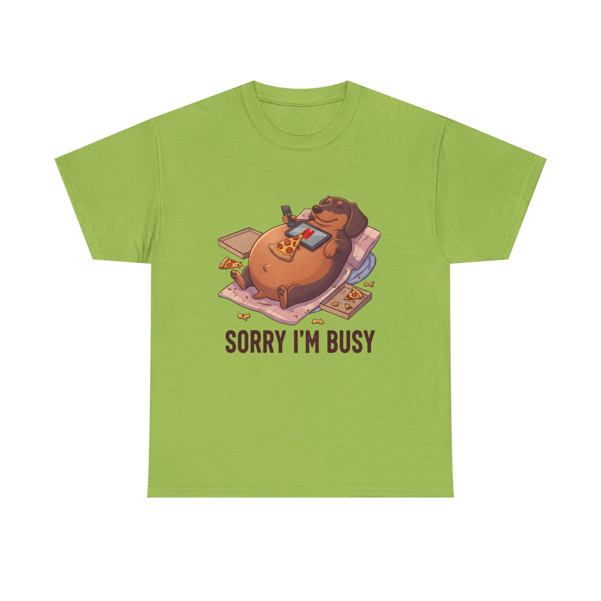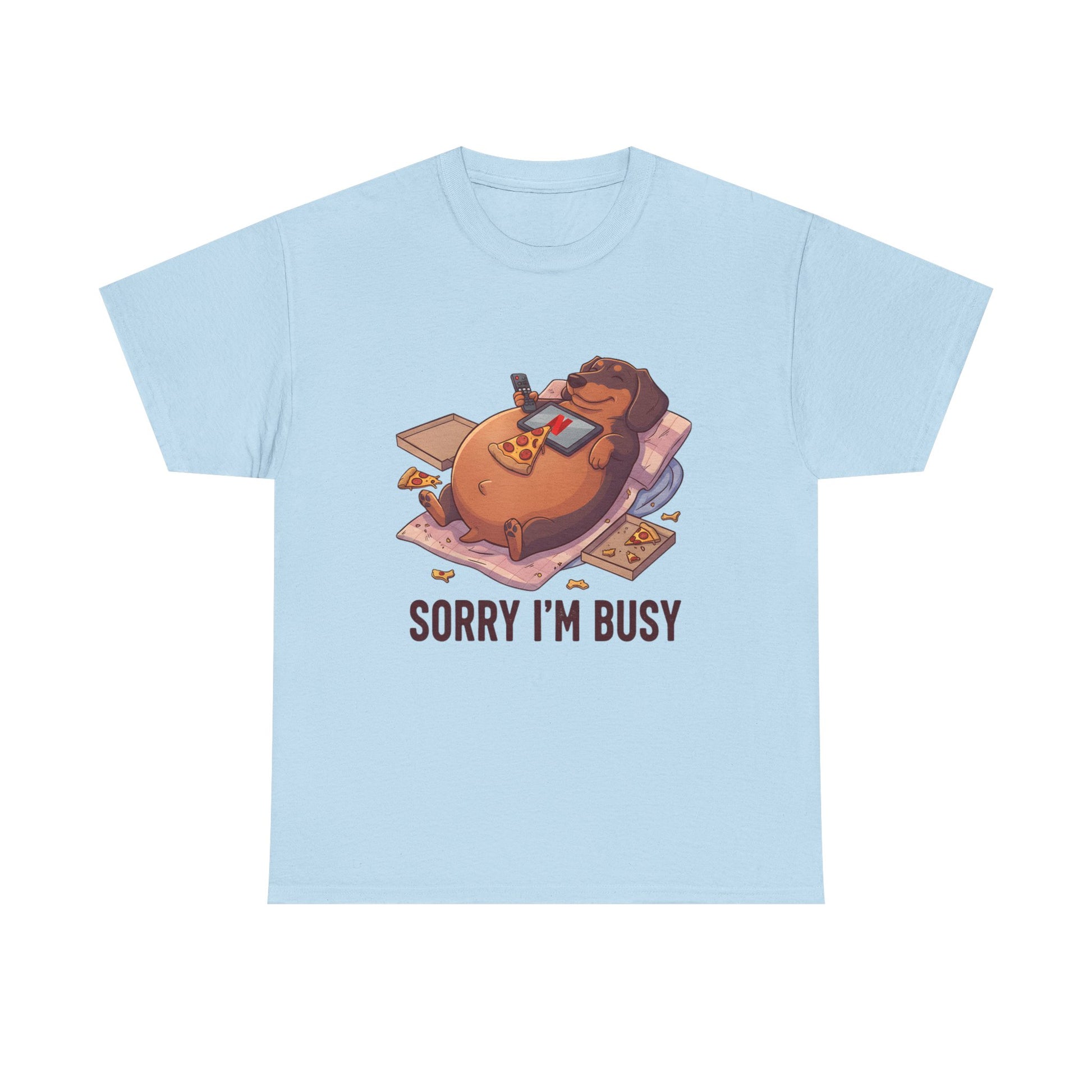 Funny Dachshund "Sorry I'm Busy" Shirt - Pizza and Movie Lover Gift